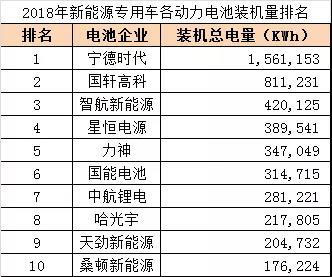 與2018年全年新能源專用車動(dòng)力電池裝機(jī)量排名比較,競(jìng)爭(zhēng)排位爭(zhēng)奪賽正在加劇。