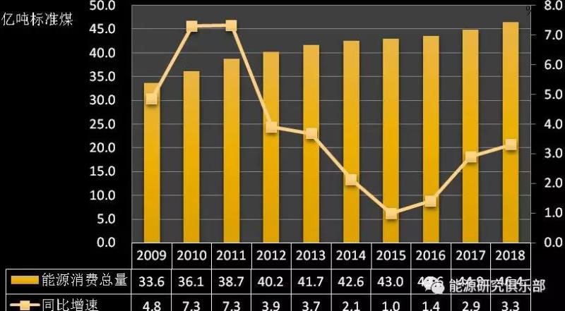 圖1-5?2009~2018年能源消費(fèi)總量及增速
