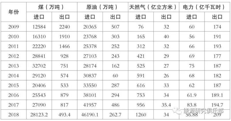 表1-3?2009~2018年我國能源進(jìn)出口情況