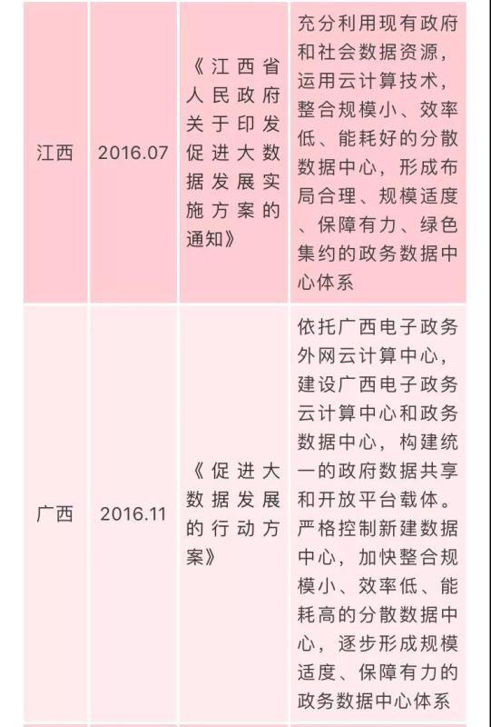 下表為截止2018年國家層面的數(shù)據(jù)中心相關(guān)政策匯總。