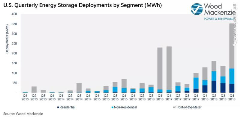 Wood Mackenzie高級(jí)儲(chǔ)能研究顧問Brett Simon表示,“2018年全年發(fā)展勢(shì)頭良好,尤其是住宅儲(chǔ)能市場(chǎng)。參與住宅儲(chǔ)能市場(chǎng)發(fā)展的不僅僅只有早期將儲(chǔ)能系統(tǒng)作為備用電源的參與者。按需調(diào)整時(shí)間、光伏電力自給自足,甚至是早期階段的電網(wǎng)服務(wù),都是正在逐步向市場(chǎng)推廣的模式,佛蒙特州的Green Mountain Power和新罕布什爾州的Liberty Utilities都在進(jìn)行這方面的業(yè)務(wù)拓展?!?