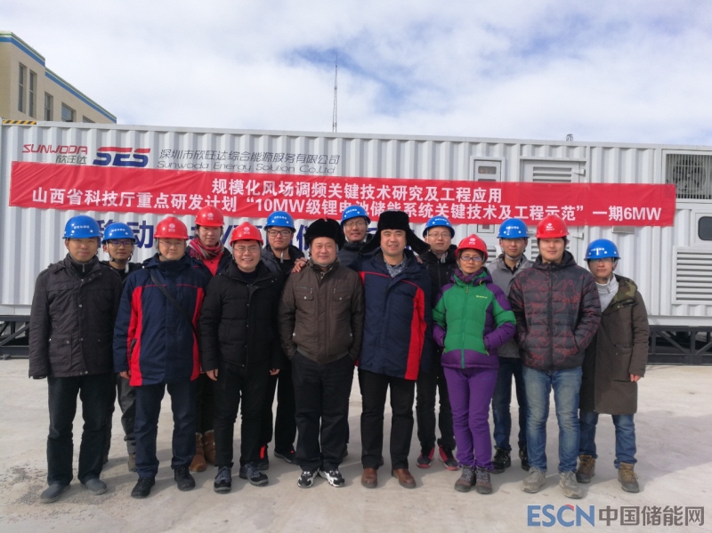 該項(xiàng)目被列入2016年山西省科技廳重大科技攻關(guān)計(jì)劃,于2018年駛?cè)腙P(guān)鍵的一年,在大規(guī)模儲(chǔ)能系統(tǒng)接入風(fēng)電場(chǎng)無(wú)先例可循的情況下,對(duì)設(shè)備可靠性提出嚴(yán)苛要求。項(xiàng)目同時(shí)面臨了生產(chǎn)周期緊張、接入電網(wǎng)困難、項(xiàng)目周期不足等問(wèn)題。山西欣旺達(dá)能源互聯(lián)網(wǎng)研究院面對(duì)問(wèn)題積極尋找解決方案,與國(guó)網(wǎng)山西省電力公司調(diào)度控制中心、山西電力科學(xué)研究院通力合作,共同推動(dòng)項(xiàng)目進(jìn)展,在全體成員共同努力下,攻堅(jiān)克難,在龍?jiān)蠢锨斤L(fēng)場(chǎng)順利完成了一期接入試驗(yàn)。