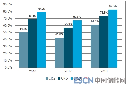 2018年動(dòng)力電池市場(chǎng)集中度明顯提升