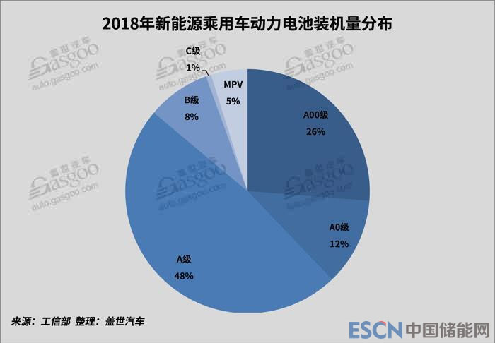 2018年全年動力電池裝機(jī)量為57.35GWh,同比增長57.0%,其中新能源乘用車裝機(jī)量達(dá)到32.86GWh,占總裝機(jī)量的57.3%,同比增長137.0%,成為動力電池的主要需求增長點(diǎn)。新能源乘用車2018年生產(chǎn)99.4萬輛,同比增長80.7%。動力電池裝機(jī)量增長幅度遠(yuǎn)大于產(chǎn)量增長幅度主要是因為2018年新能源乘用車轉(zhuǎn)型升級,2018年A級車生產(chǎn)44.0萬輛,電池裝機(jī)量達(dá)到15.85GWh,無論是產(chǎn)量還是動力電池裝機(jī)量都已經(jīng)遠(yuǎn)遠(yuǎn)超過A00級車(生產(chǎn)32.78萬輛,電池裝機(jī)量8.63GWh),A級車已經(jīng)牢牢占據(jù)著新能源乘用車市場最大的份額,且我們認(rèn)為A級車2019年份額還會繼續(xù)擴(kuò)大。2018年插電式混動乘用車裝機(jī)量為3.71GWh,同比增長145.7%,主要是由于私人消費(fèi)認(rèn)可度提升帶動,2018年比亞迪唐、榮威i6、比亞迪秦、榮威eRx5、包括合資品牌途觀L PHEV、寶馬5系等車型都在市場取得好的成績。