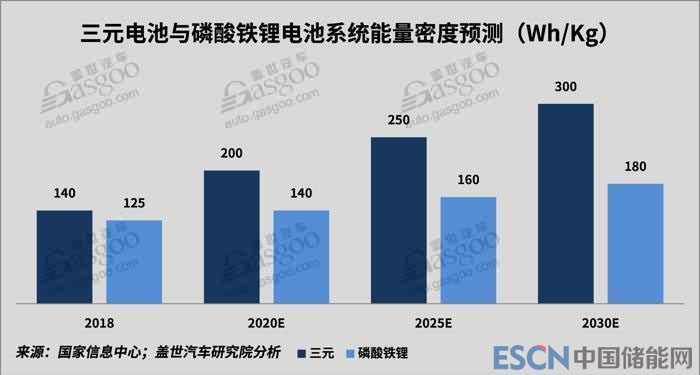 三元電池有望2020年系統(tǒng)能量密度接近200Wh/kg,2025年接近250Wh/kg;而磷酸鐵鋰系統(tǒng)能量密度已接近極限,但相對于三元材料具備價格優(yōu)勢。