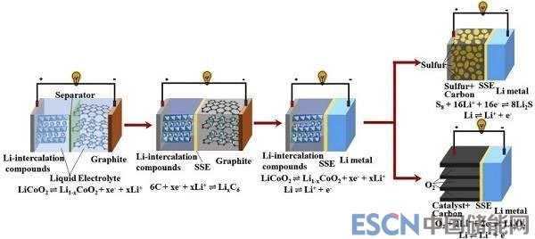 圖二、使用固體電解質(zhì)到基于鋰金屬負極的ASSLMBs、ASSLSBs和ASSLABs等先進電池的鋰電池從常規(guī)LIBs到ASSLIBs的發(fā)展趨勢示意圖