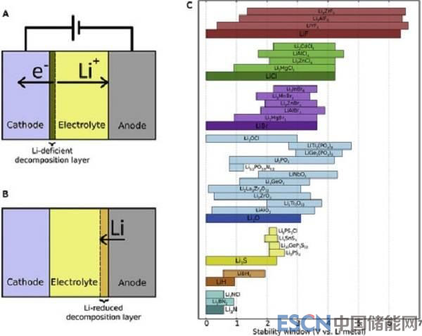 圖四、SSEs電極—電解質(zhì)界面示意圖及電化學穩(wěn)定性區(qū)域