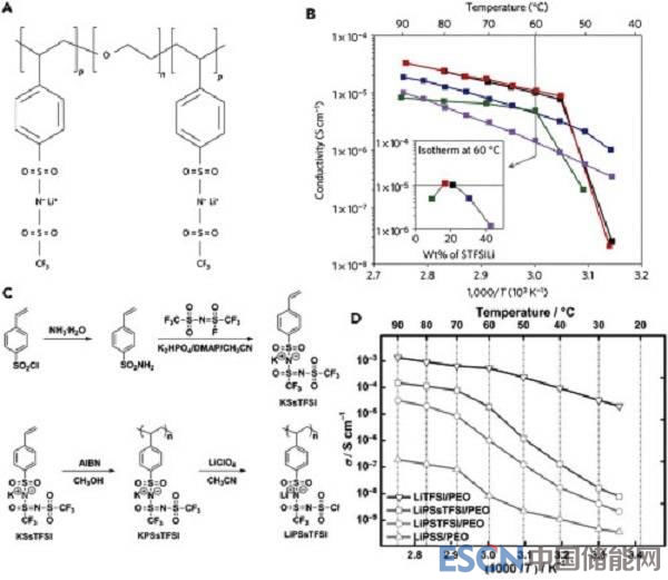 (A) 單離子導電聚合物電解質(zhì)的化學結構;