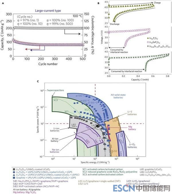 (A)在18 C和100℃下,LTO/Li9.54Si1.74P1.44S11.7Cl0.3/LCO ASSLBs的循環(huán)性能;