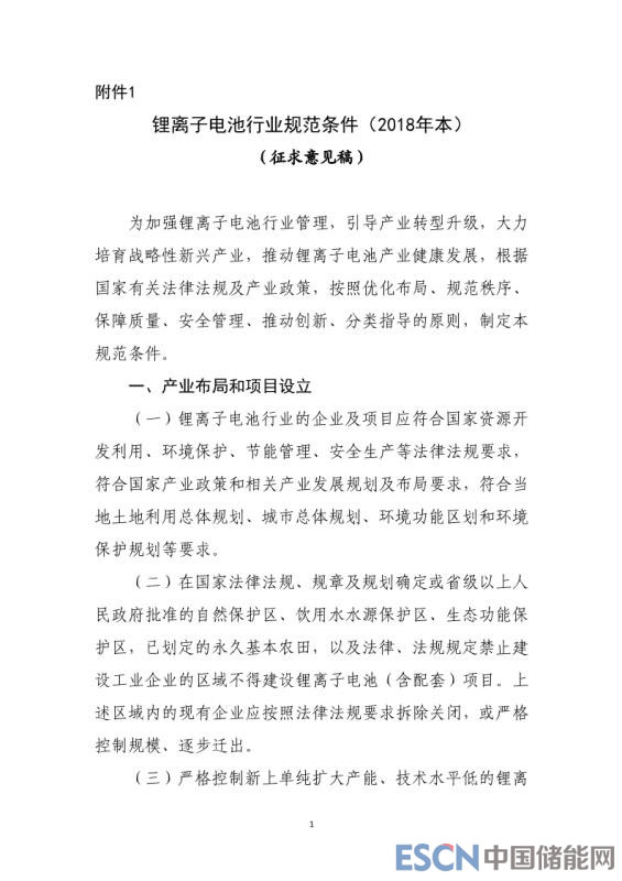附件:1.鋰離子電池行業(yè)規(guī)范條件(2018年本)(征求意見稿)