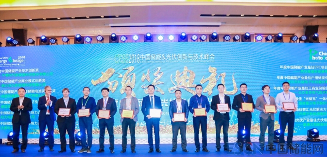 寧德時(shí)代CATL(左五)獲頒“2018年年度中國(guó)儲(chǔ)能產(chǎn)業(yè)技術(shù)創(chuàng)新獎(jiǎng)”