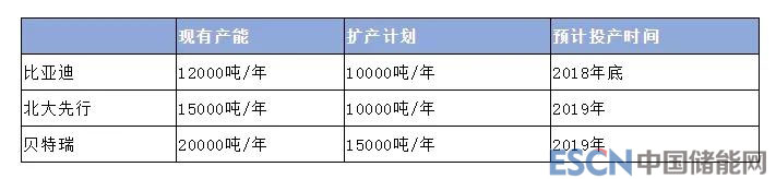 比亞迪似乎也有此考量。截止到2018年11月份,比亞迪的磷酸鐵鋰需求量仍然高達(dá)近2000噸/月,而實(shí)際自產(chǎn)量?jī)H僅能滿足其1/3的需求,大部分仍然需要外采,在未來的規(guī)劃中,比亞迪的月均需求量預(yù)計(jì)將達(dá)到3500噸/月,不管是為了保證自身產(chǎn)品的供應(yīng),還是考慮到原料來源的安全性上,擴(kuò)產(chǎn)都已經(jīng)勢(shì)在必行。