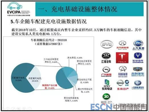 截至2018年10月,通過聯(lián)盟成員內(nèi)整車企業(yè)采樣約57.3萬輛車的車樁相隨信息,其中建設(shè)安裝私人類充電樁40.1萬臺。