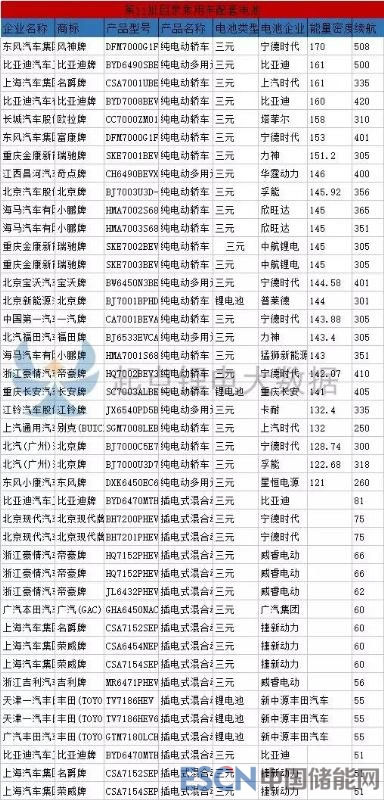 值得注意的是,本批次目錄中寧德時代電池系統(tǒng)能量密度再創(chuàng)新高,達(dá)到170Wh/kg,為東風(fēng)汽車集團的風(fēng)神牌純電動轎車配套,續(xù)航達(dá)508公里。