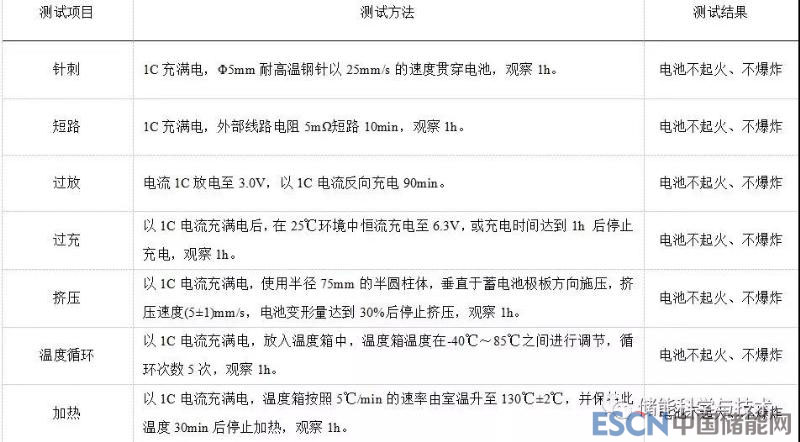 按照國(guó)標(biāo)測(cè)試標(biāo)準(zhǔn),對(duì)12Ah混合固液電解質(zhì)鋰電池進(jìn)行安全測(cè)試,所有測(cè)試均以1C充滿電(至4.2V),在100%SOC狀態(tài)下進(jìn)行,測(cè)試結(jié)果表明固態(tài)鋰電池具有極高的安全性。
