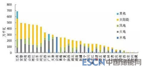 新增裝機(jī)類型主要以太陽能發(fā)電裝機(jī)為主,占比45.5%,太陽能發(fā)電新增裝機(jī)主要分布在江蘇、山東、浙江、河北、安徽、河南等省份(新增裝機(jī)260萬千瓦以上);