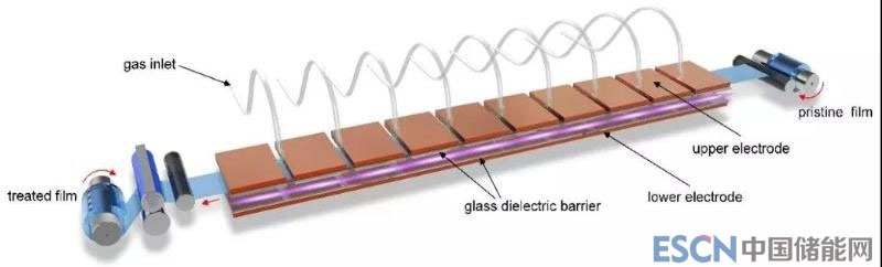 為解決上述問題,該課題組提出采用等離子體增強(qiáng)化學(xué)氣相沉積技術(shù)在聚合物薄膜表面快速沉積具有寬能帶隙的納米絕緣層,以提高電極/介質(zhì)界面處的電荷注入勢壘,從而抑制聚合物電介質(zhì)薄膜在高溫下的泄漏電流,大幅提高了聚合物電介質(zhì)薄膜在高溫、高電場下的儲(chǔ)能特性。該方法能夠?qū)崿F(xiàn)在大氣壓條件下快速沉積,具備連續(xù)處理的能力;其室溫沉積特性使得該方法直接適用于任意聚合物介質(zhì)薄膜。通過引入卷對卷薄膜加工技術(shù)和動(dòng)態(tài)沉積,可實(shí)現(xiàn)規(guī)?;?、連續(xù)化生產(chǎn)。該方法具有無污染、簡便、高效、低成本等特點(diǎn),并且可與現(xiàn)有聚合物電容器薄膜生產(chǎn)線相兼容。目前課題組已在該技術(shù)領(lǐng)域申請多項(xiàng)國內(nèi)專利和PCT專利,并正與相關(guān)企業(yè)聯(lián)合進(jìn)行產(chǎn)業(yè)化開發(fā)。