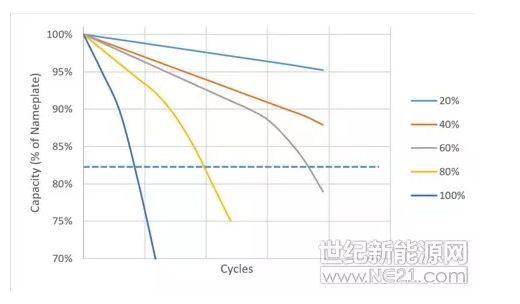 圖3.循環(huán)深度放電對(duì)電池容量保持率降低的影響