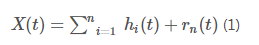 式中:X(t)為待分解信號(hào);hi(t)表示原始信號(hào)的第i階IMF分量;rn(t)表示分解余項(xiàng)。