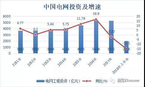要知道“十二五”以來,我國電網(wǎng)投資總體都保持增長,如果說2017年電網(wǎng)投資開始出現(xiàn)2011年以來首次下降,那么今年上半年的降幅之大,已經(jīng)宣告電網(wǎng)大投資時代的結(jié)束。