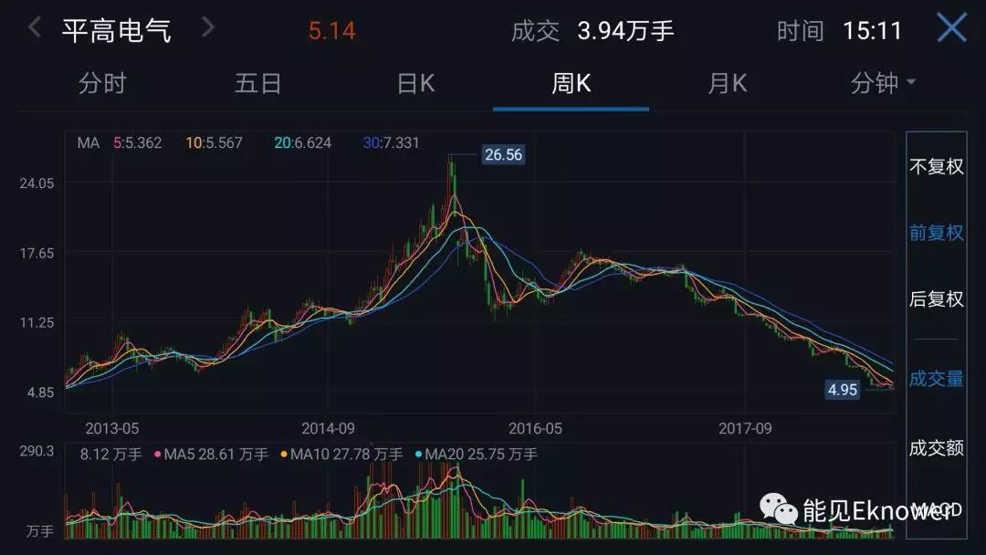 伴隨業(yè)績的下降,和對未來的預(yù)期,股價也是一落千丈。8月6日,平高電氣股價盤中一度跌至4.95元/股,創(chuàng)下近十年來新低。