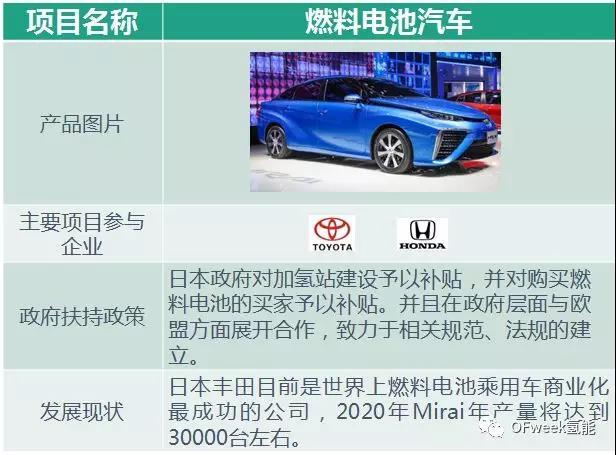 日本是資源短缺型國家,因此非常積極的探索石油以外的其他能源,日本政府對氫能和燃料電池的推廣力度在世界范圍內(nèi)都是最大的。目前,日本在家庭用燃料電池?zé)犭娐?lián)供固定電站和燃料電池汽車商業(yè)化運作方面都是最成功的。