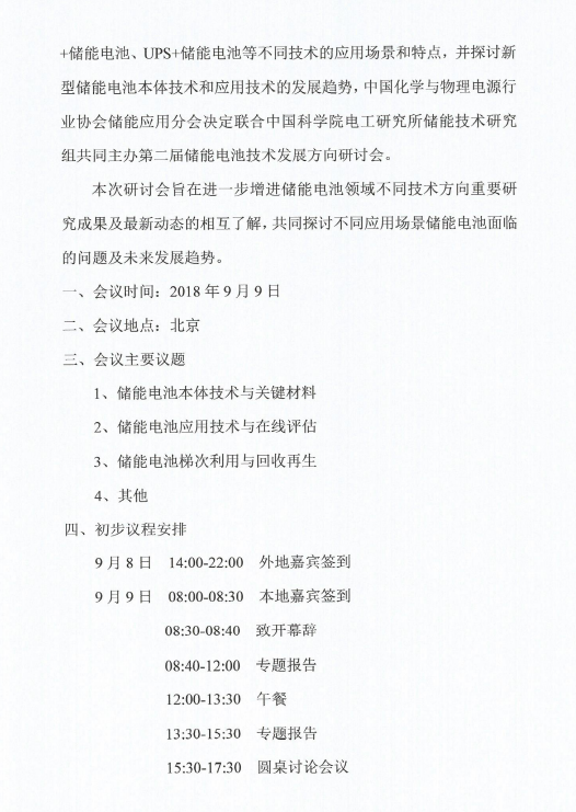 第二屆儲(chǔ)能電池技術(shù)發(fā)展方向研討會(huì)9月在京舉行
