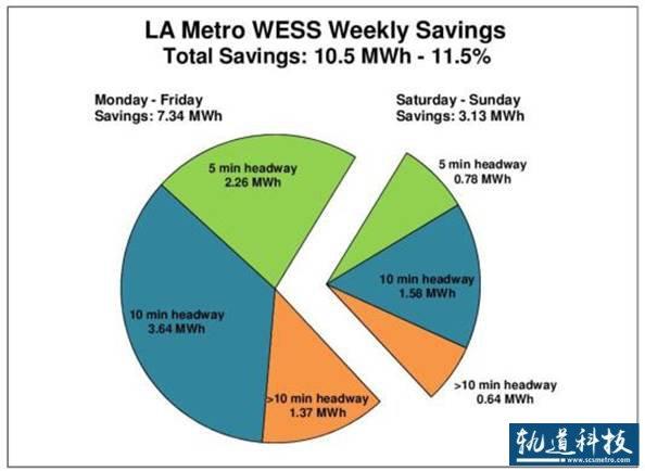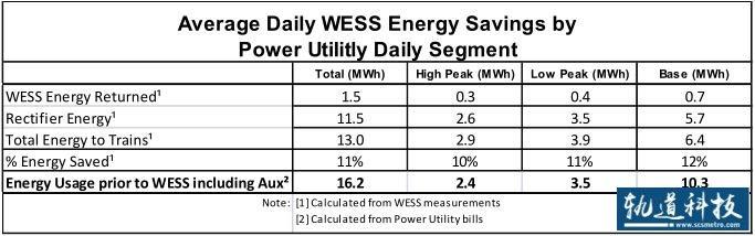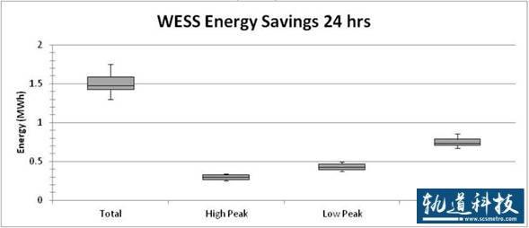 地鐵每天運(yùn)行20小時,高峰期行車間隔為5分鐘,平峰期行車間隔為10分鐘,低峰期運(yùn)行時間為10-20分鐘,周末行車間隔為5-20分鐘。工作日WESS每天平均節(jié)省1.6MWh電量,周末平均每天節(jié)約1.5MWh電量。