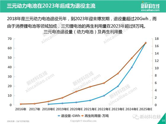 中國(guó)儲(chǔ)能網(wǎng)訊: 2018年動(dòng)力鋰電池將迎來(lái)退役潮,市場(chǎng)對(duì)動(dòng)力鋰電池回收行業(yè)的關(guān)注開(kāi)始升溫,由于前期基數(shù)較小,目前動(dòng)力鋰電池回收市場(chǎng)規(guī)模相對(duì)還較小,但相關(guān)數(shù)據(jù)顯示,到2025年,動(dòng)力電池回收產(chǎn)業(yè)將達(dá)到百億級(jí)規(guī)模!