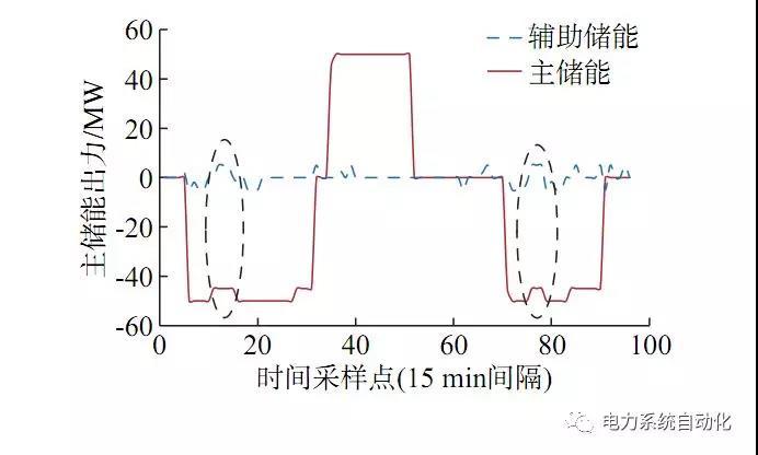 圖5 動態(tài)效率模型下主儲能和輔助儲能功率曲線