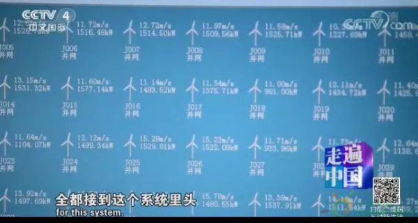 蔡鵬程:180多家風電場的1萬多臺風機,在這個系統(tǒng)里面,我們把這一萬多臺風機的運行的發(fā)電出力以及當?shù)氐娘L速等等關鍵數(shù)據(jù)全都接到這個系統(tǒng)里頭。