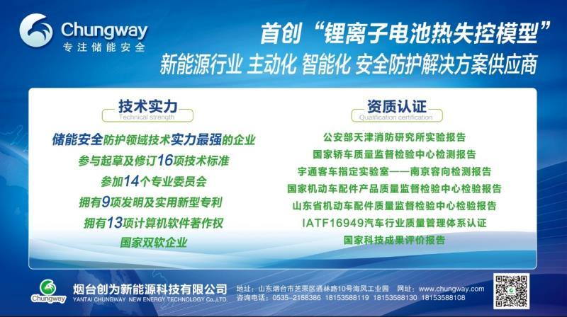 中國(guó)儲(chǔ)能網(wǎng)訊:煙臺(tái)創(chuàng)為新能源科技有限公司(以下簡(jiǎn)稱“煙臺(tái)創(chuàng)為”)以儲(chǔ)能安全解決方案為主營(yíng)業(yè)務(wù),專注新能源汽車、動(dòng)力電池、儲(chǔ)能電站安全防控領(lǐng)域的最新技術(shù)研究、解決方案提供與實(shí)施,并致力于打造成為“儲(chǔ)能安全領(lǐng)域領(lǐng)先品牌”。