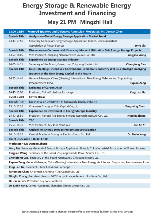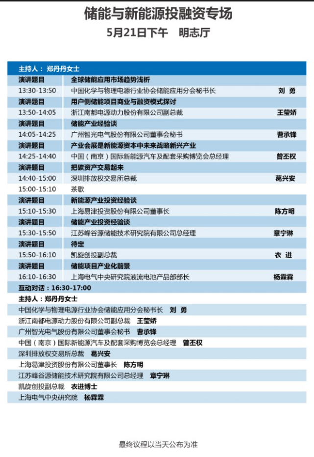 以下為儲能與新能源投融資大會議程表。