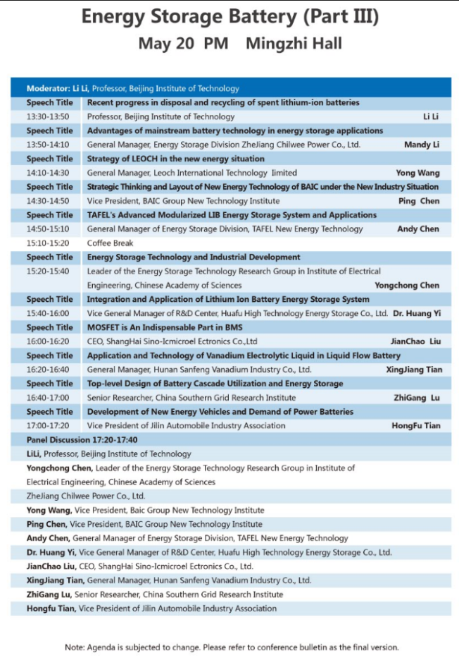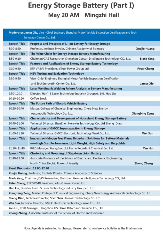 以下為儲(chǔ)能電池專場(chǎng)(二場(chǎng))大會(huì)議程表。