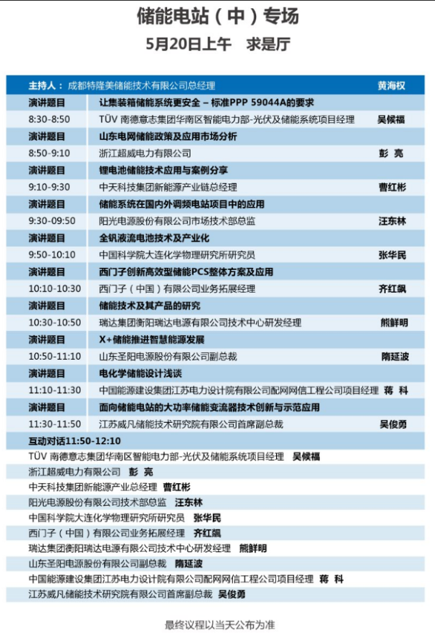 以下為儲(chǔ)能電站專場(chǎng)(三場(chǎng))大會(huì)議程表。