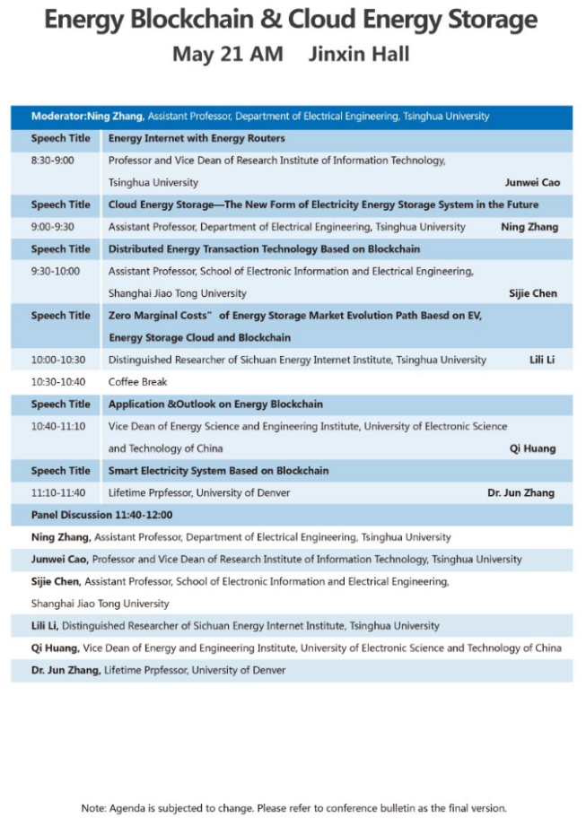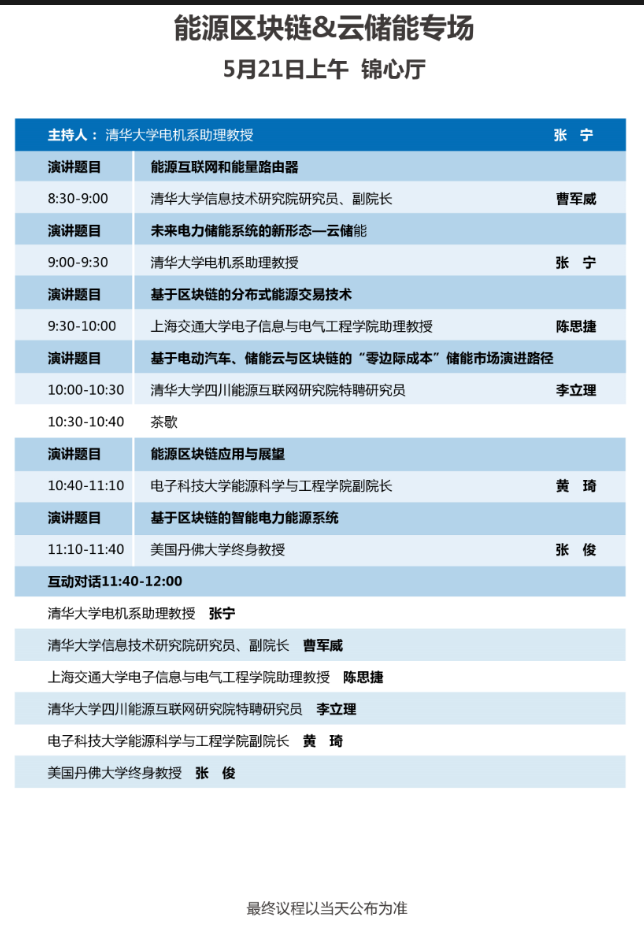 以下為能源區(qū)塊鏈與云儲(chǔ)能專場(chǎng)大會(huì)議程表。