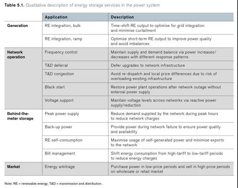 表5.1電力系統(tǒng)儲能服務(wù)的定性描述