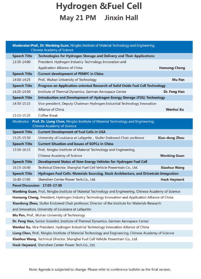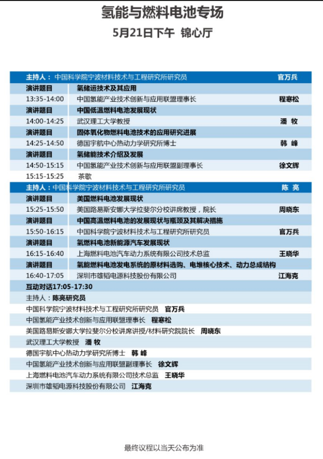 以下為氫能與燃料電池專場大會(huì)議程表。