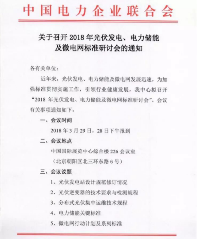 為加強(qiáng)標(biāo)準(zhǔn)貫徹實(shí)施工作,引領(lǐng)光伏、儲(chǔ)能和微電網(wǎng)行業(yè)健康發(fā)展,由中國(guó)電力企業(yè)聯(lián)合會(huì)標(biāo)準(zhǔn)化管理中心主辦,光伏們、中國(guó)儲(chǔ)能網(wǎng)、北京泰格爾展覽有限公司承辦的 “2018年光伏發(fā)電、電力儲(chǔ)能及微電網(wǎng)標(biāo)準(zhǔn)研討會(huì)”將于3月29日在北京召開。點(diǎn)擊文末“閱讀原文”即可報(bào)名參加。
