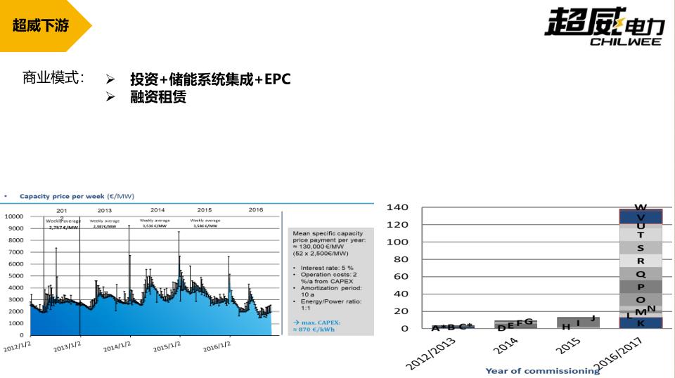 下面幾個(gè)圖是我們?cè)谧龅聡?guó)項(xiàng)目的信息分享。這個(gè)藍(lán)色的線是波動(dòng)的,市場(chǎng)價(jià)格,尤其是儲(chǔ)能去并網(wǎng)的市場(chǎng)價(jià)格是市場(chǎng)波動(dòng)的曲線,我們現(xiàn)在相對(duì)來(lái)說(shuō)還是固定的。因?yàn)槭袌?chǎng)機(jī)制的形成,德國(guó)到2017年有了市場(chǎng)機(jī)制之后,儲(chǔ)能的爆發(fā)是跳躍式的爆發(fā)。