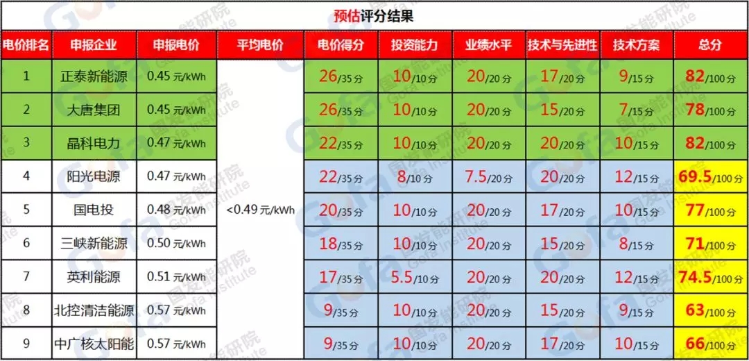 從項(xiàng)目2預(yù)估評分結(jié)果來看,中廣核太陽能、國電投、正泰新能源等三家企業(yè)具有競爭此標(biāo)段的可能。其中中廣核太陽能在電價上的優(yōu)勢明顯,但也有可能在技術(shù)方案評審中因?yàn)殡妰r過低而失去分?jǐn)?shù)優(yōu)勢。