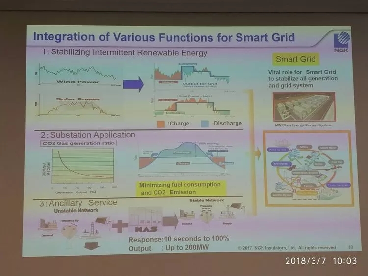 NGK insulators公司的系統(tǒng)設(shè)計經(jīng)理Hiroyuki Abe上午在亞洲開發(fā)銀行研究所給我們講解了PPT