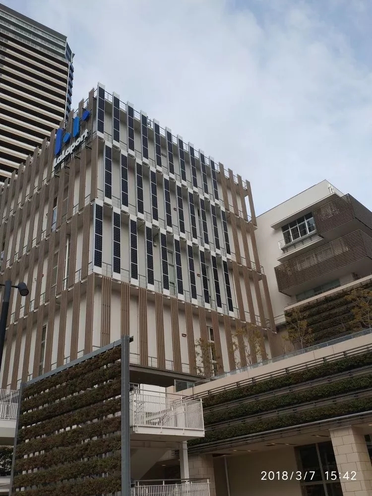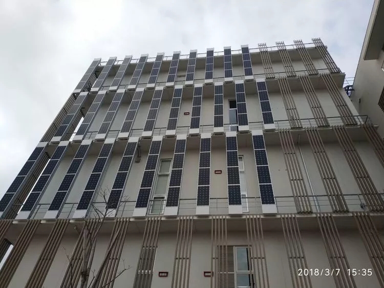 鈉硫電池在城市里當(dāng)然要接光伏,這是一幢建筑的南立面安裝的光伏,單晶硅的組件。