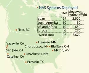 該公司總共有193個鈉硫電池工程項目,總?cè)萘渴?670兆瓦時。