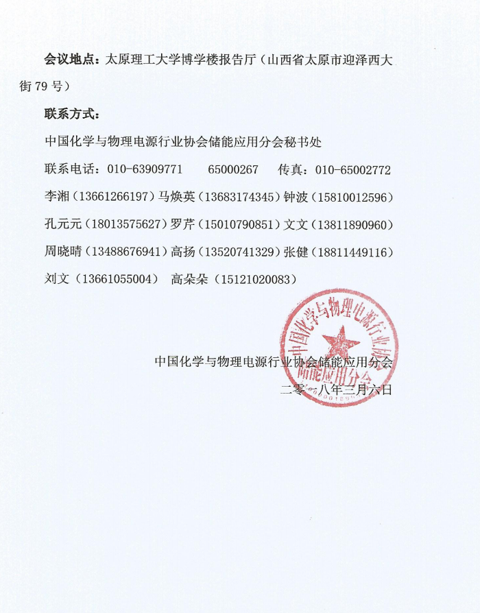 中國化學(xué)與物理電源行業(yè)協(xié)會儲能應(yīng)用分會秘書處