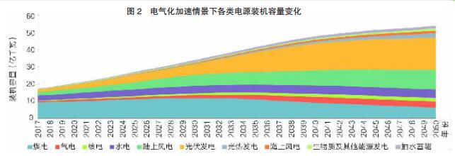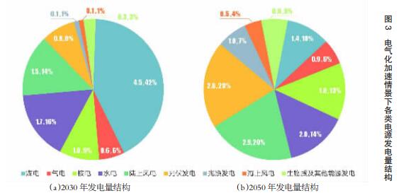 2050年之前電源裝機將保持快速、持續(xù)增長,常規(guī)轉型情景與電氣化加速情景下,2030年裝機容量分別達到28.7億千瓦、36.3億千瓦,2050年裝機容量分別達到44.3億千瓦、57.5億千瓦。增量部分以清潔能源為主,電源結構逐步優(yōu)化。兩情景下,2030年清潔電源裝機容量分別達到15.4億千瓦、21.7億千瓦,2050年分別達到35.1億千瓦、46.9億千瓦。