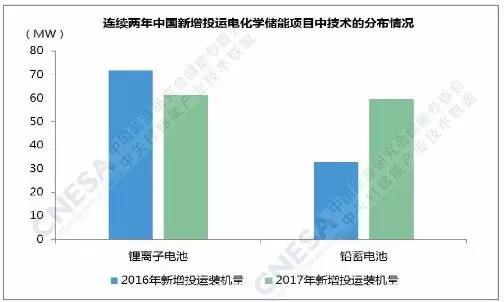 據(jù)中關村儲能產(chǎn)業(yè)技術聯(lián)盟(CNESA)項目庫的不完全統(tǒng)計,截至2017年底,中國已投運儲能項目累計裝機規(guī)模為28.9GW。其中,抽水蓄能的累計裝機占比最大,接近99%,電化學儲能項目的累計裝機規(guī)模緊隨其后,為389.8MW,占比為1.3%,較上一年增長0.2個百分點。2017年,中國新增投運電化學儲能項目的功率規(guī)模為121MW,同比增速超過15%。