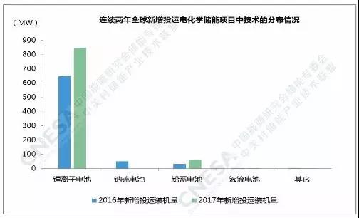 從技術分布上看,鋰離子電池和鉛蓄電池的功率規(guī)?;境制?,比重分別為51%和49%,同時鉛蓄電池的同比增速最大,超過81%。