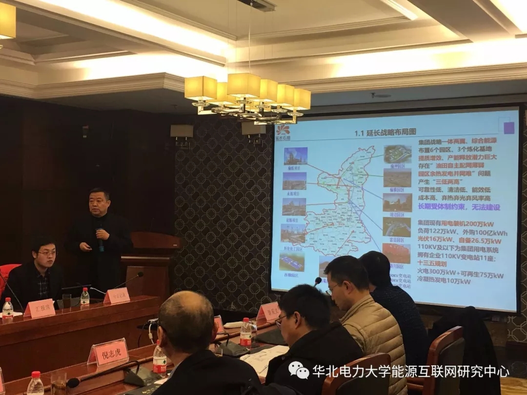 圖為華北電力大學(xué)能源互聯(lián)網(wǎng)研究中心副主任劉敦楠副教授代表報(bào)告編制單位進(jìn)行兩個(gè)項(xiàng)目的可行性研究匯報(bào)