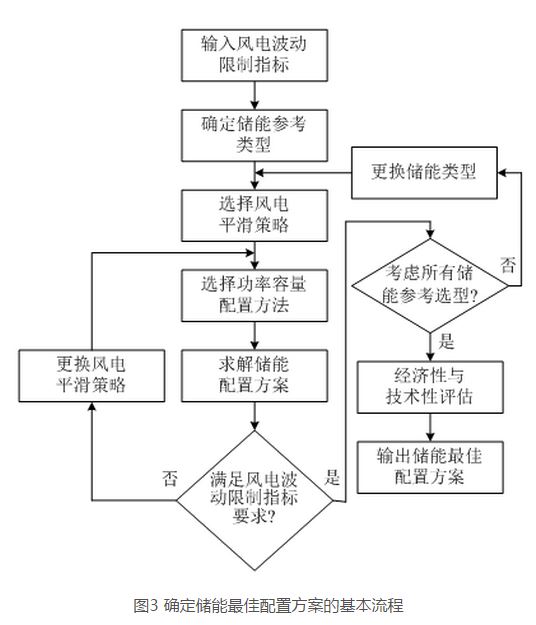 綜合儲能系統(tǒng)的類型選取、風(fēng)電平滑策略及功率容量配置方法,本文提出一種確定儲能最佳配置方案的方法,如圖3所示。